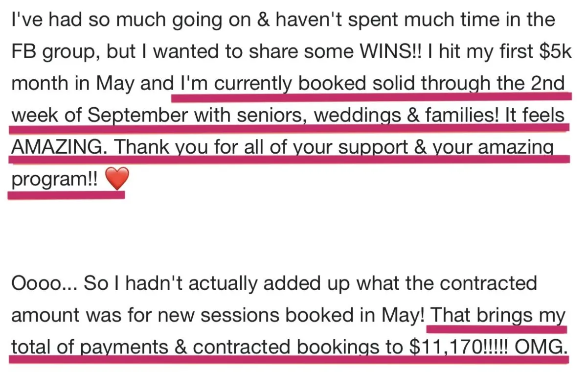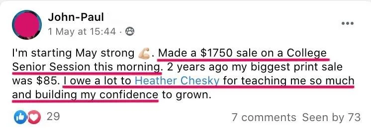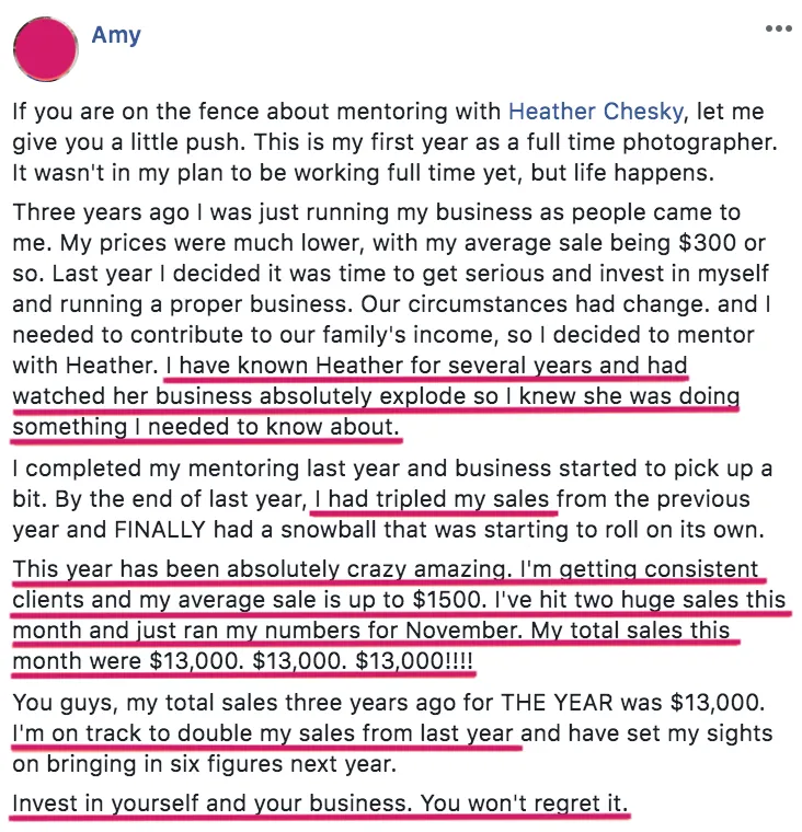 Amy, a maternity and newborn photographer went from $300 sessions to average portrait sales of $1500...then FIVE FIGURE MONTHS! She's on track to double her sales this year! 👇