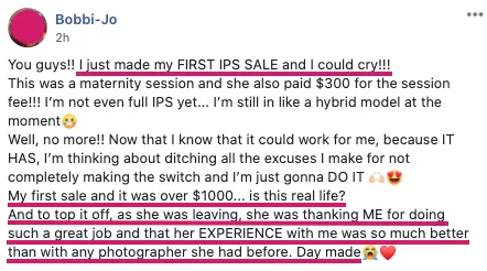 Bobbi-Jo went earned over $1000 from her very first in person sales session! That didn't even include the $300 session fee! 👇